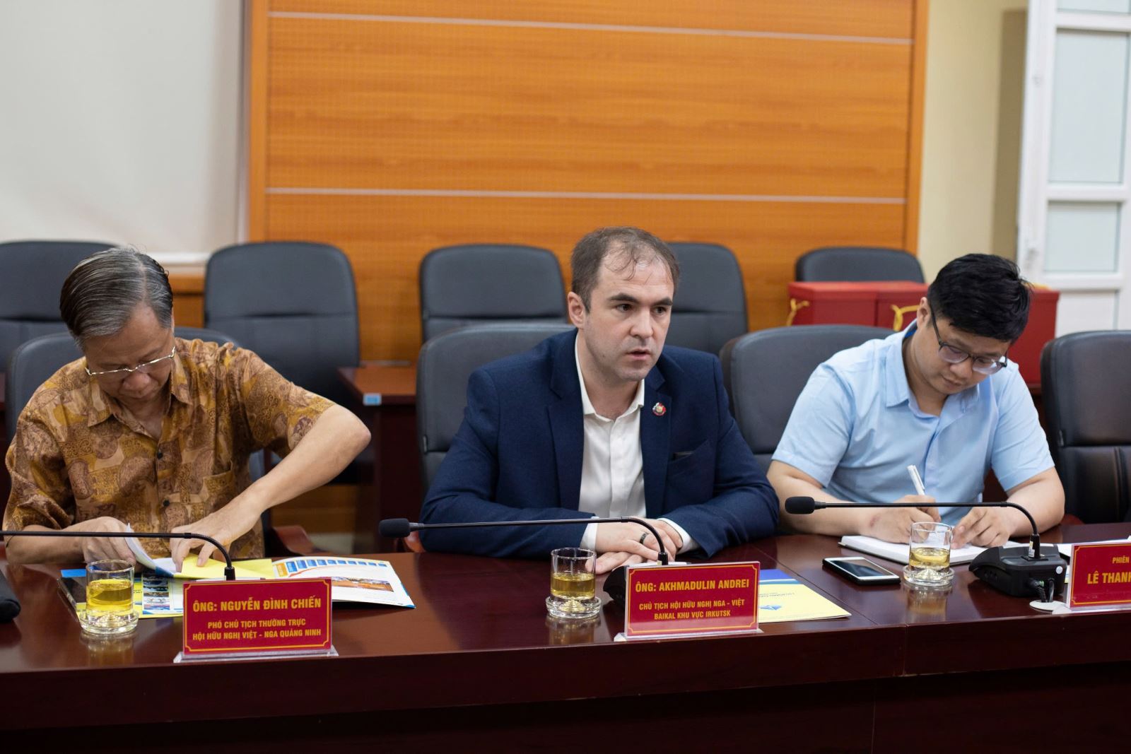 Participating in the meeting from Ha Long University were Dr. Nguyen Duc Tiep - the President of the University, Dr. Phan Thi Hue - the Vice President, along with leaders from the Faculty of Tourism, Faculty of Culture, the International Cooperation Office, and the Scientific Management Department. Representing the Vietnam-Russia Baikal Friendship Association were Mr. Akhmadulin Andrei - President of the Vietnam-Russia Baikal Friendship Association in the Irkutsk region, and Mr. Lysenko Nikita - a member of the Vietnam-Russia Baikal Friendship Association in the Irkutsk region.