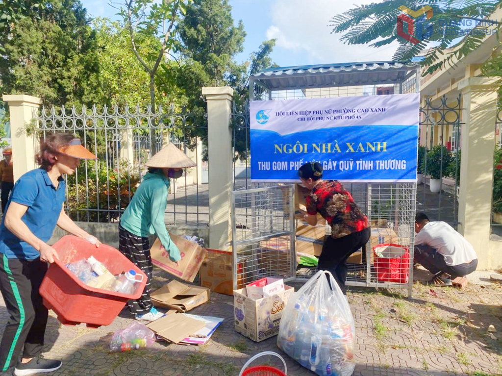 Mô hình "Ngôi nhà xanh" thu gom phế liệu gây quỹ tình thương của Chi hội phụ nữ khu phố 4A (Hội LHPN phường Cao Xanh).
