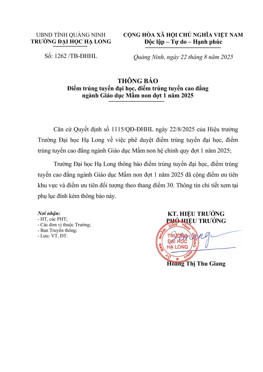 THÔNG BÁO Điểm trúng tuyển đại học, điểm trúng tuyển cao đẳng ngành Giáo dục Mầm non đợt 2 năm 2025
