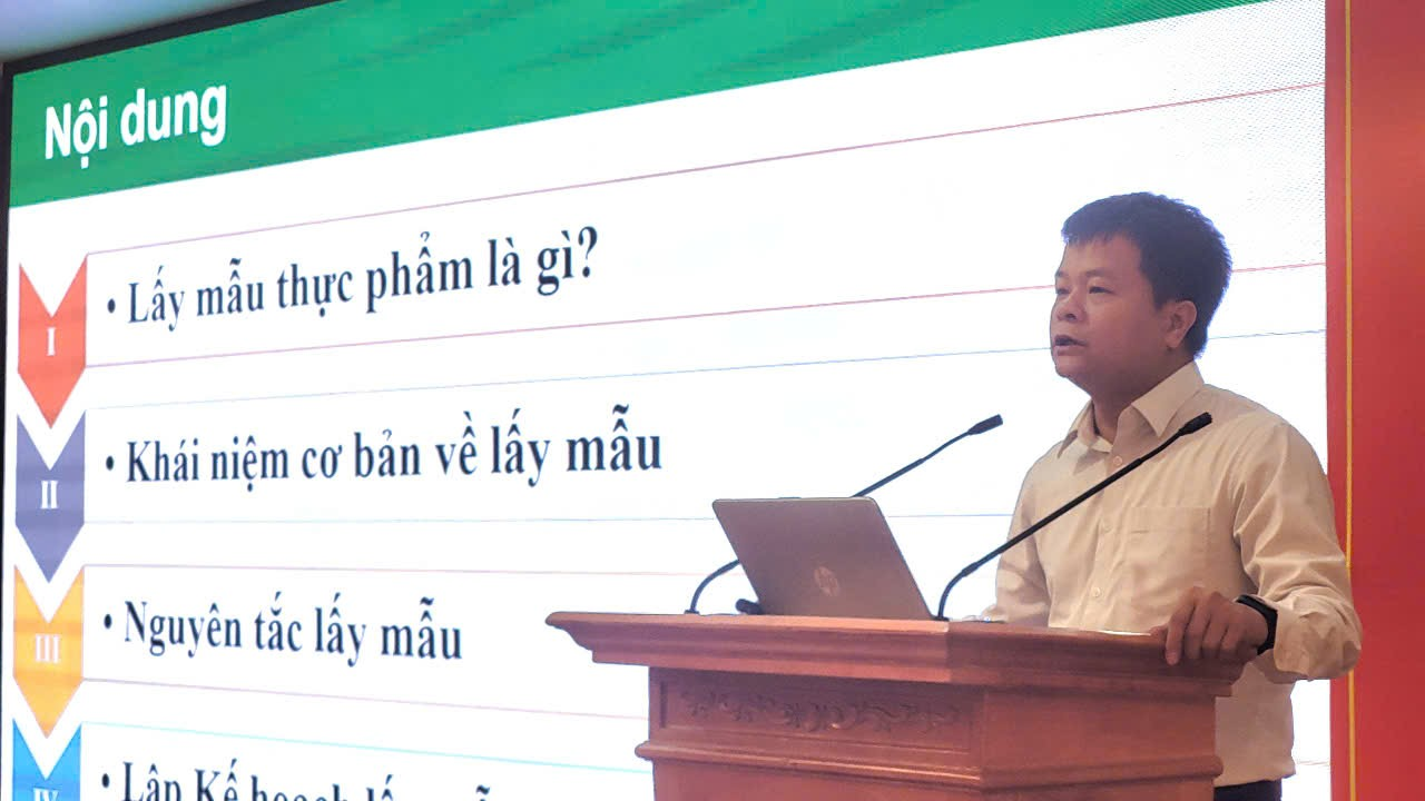 PGS. TS. Trần Cao Sơn - Phó Viện trưởng Viện Kiểm nghiệm ATVSTP Quốc gia hướng dẫn kỹ thuật lấy mẫu thực phẩm
