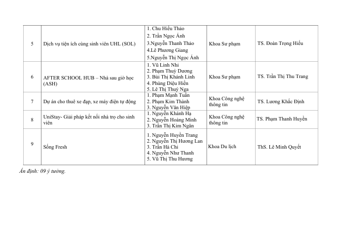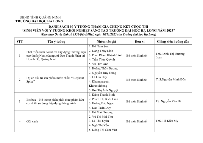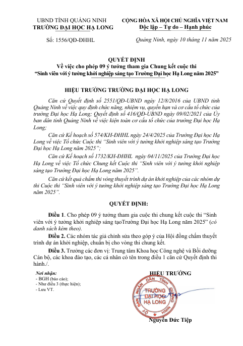 Quyết định về việc cho phép 09 ý tưởng tham gia Chung kết cuộc thi “Sinh viên với ý tưởng khởi nghiệp sáng tạo Trường Đại học Hạ Long năm 2025