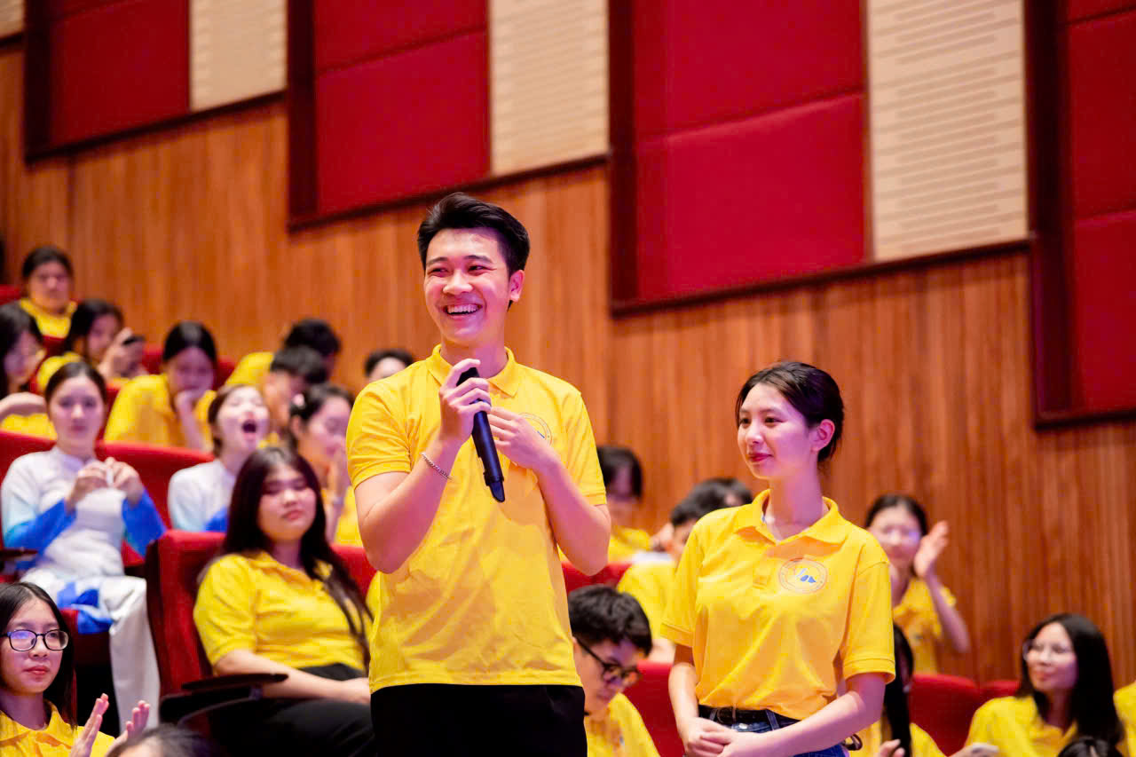 Phần được mong chờ nhất là gameshow “K9 và những người bạn” đã thực sự khuấy động hội trường nhà B. Hai phần chơi Hiểu ý đồng đội và Hỏi nhanh đáp gọn không chỉ mang lại tiếng cười sảng khoái, mà còn thể hiện tinh thần đoàn kết, sáng tạo và gắn bó của sinh viên các khoá K8, K9, K10, K11.