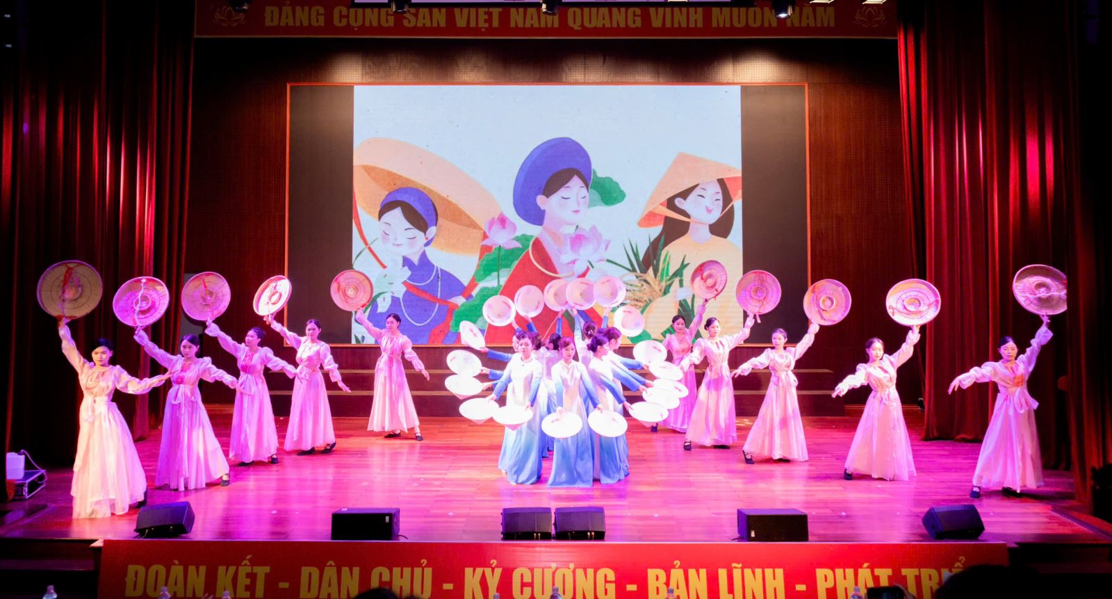 Chương trình sôi động ngay từ đầu với tiết mục múa “Nón nghiêng dáng Việt”–hình ảnh chiếc nón lá mềm mại, duyên dáng như chính tâm hồn người phụ nữ Việt Nam.Tiếp nối là những lời tri ân, những bó hoa và món quà yêu thương, tất cả hòa quyện tạo nên không gian ấm áp và đầy ý nghĩa.
