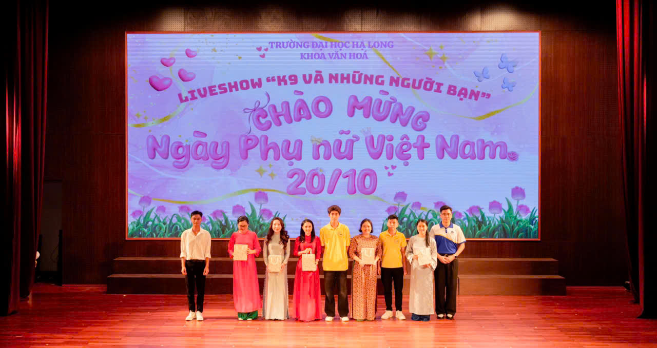Chiều ngày 16/10, tại Hội trường nhà B – Trường Đại học Hạ Long, khoa Văn hoá đã tổ chức chương trình chào mừng ngày Phụ nữ Việt Nam 20/10 với chủ đề “K9 và những người bạn” trong không khí ngập tràn sắc hồng yêu thương.