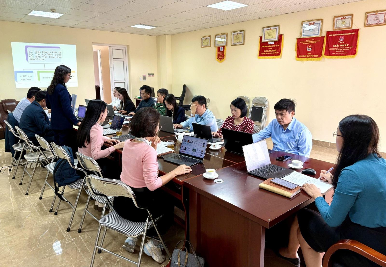 - Mở đầu buổi sinh hoạt chuyên đề, đồng chí Vũ Thị Thanh Thanh đã trình bày báo cáo tổng quan, làm rõ cơ sở lý luận của đổi mới giảng dạy triết học. Cơ sở lý luận về tiếp cận liên ngành xuất phát từ nhu cầu làm rõ tính ứng dụng của các nguyên lý, quy luật và phạm trù triết học trong đời sống xã hội. Cơ sở lý luận về ứng dụng công nghệ đa nền tảng, ứng dụng công nghệ trong giáo dục đại học không chỉ phản ánh xu hướng tất yếu của thời đại mà còn giúp khắc phục hạn chế của phương pháp truyền thống. Công nghệ đa nền tảng bao gồm: Hệ sinh thái AI tạo sinh (Gemini, Chat GPT), nền tảng thiết kế số (Canva), nền tảng cộng đồng số (Facebook, Tiktok), nền tảng website giáo dục (Google sites, Gemini) và nhấn mạnh vai trò của công nghệ đa nền tảng trong giáo dục. Đồng chí Thanh đã giới thiệu hai mô hình đổi mới trong giảng dạy triết học: Mô hình 1: Website Triết Việt AI, Mô hình 2: Website Mini thiết kế trực tiếp bằng Gemini đã được giảng viên triển khai trong dạy học học phần Triết học Mác – Lênin có hiệu quả rõ rệt trong việc nâng cao trải nghiệm học tập, thúc đẩy tư duy biện chứng, phát triển năng lực liên ngành và tạo môi trường học thuật mở cho sinh viên.