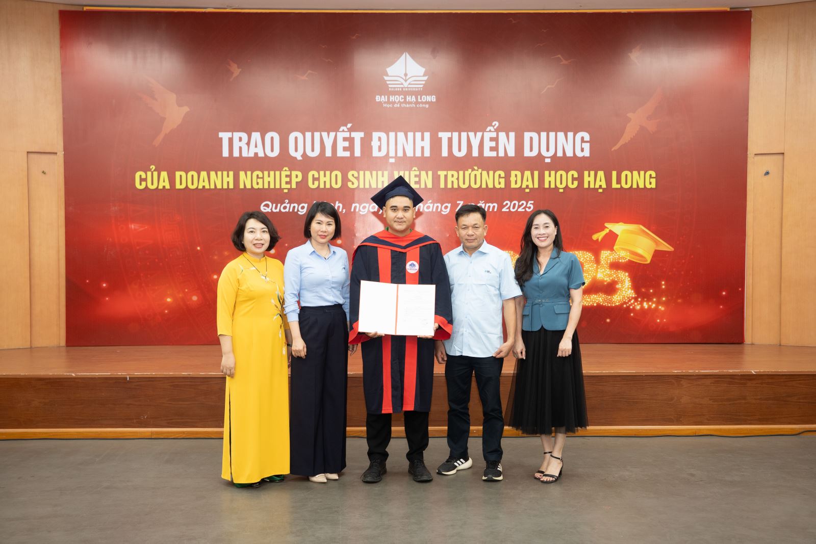 Ngày 25/7/2025, ngay trước thềm lễ trao bằng tốt nghiệp, sinh viên Bùi Danh Lam – lớp Nuôi trồng thủy sản K6, Khoa Thủy sản, Trường Đại học Hạ Long – đã vinh dự được Công ty TNHH BDC Việt Thắng chính thức trao quyết định tuyển dụng.