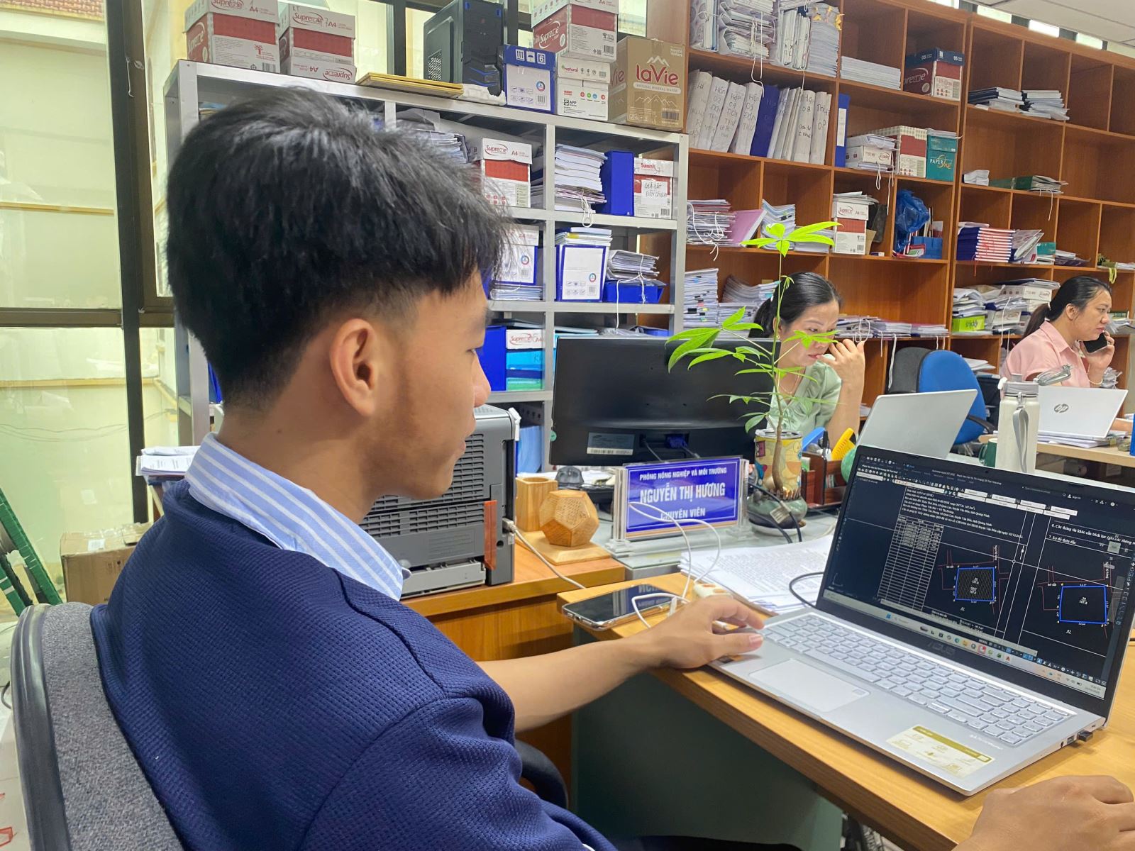Trong hai tuần đầu tiên, sinh viên chủ yếu làm quen với môi trường làm việc, nắm bắt quy trình chuyên môn và cơ cấu tổ chức tại đơn vị thực tập. Bên cạnh đó, các em đã tích cực tham gia hỗ trợ các cơ quan địa phương trong chiến dịch làm sạch và chuẩn hóa cơ sở dữ liệu đất đai – một nhiệm vụ có ý nghĩa thiết thực trong công tác quản lý nhà nước về tài nguyên.