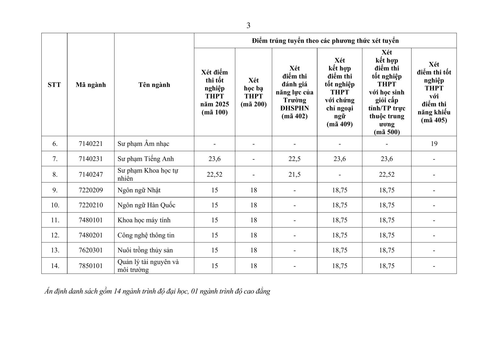 THÔNG BÁO Điểm trúng tuyển đại học, điểm trúng tuyển cao đẳng ngành Giáo dục Mầm non đợt 2 năm 2025