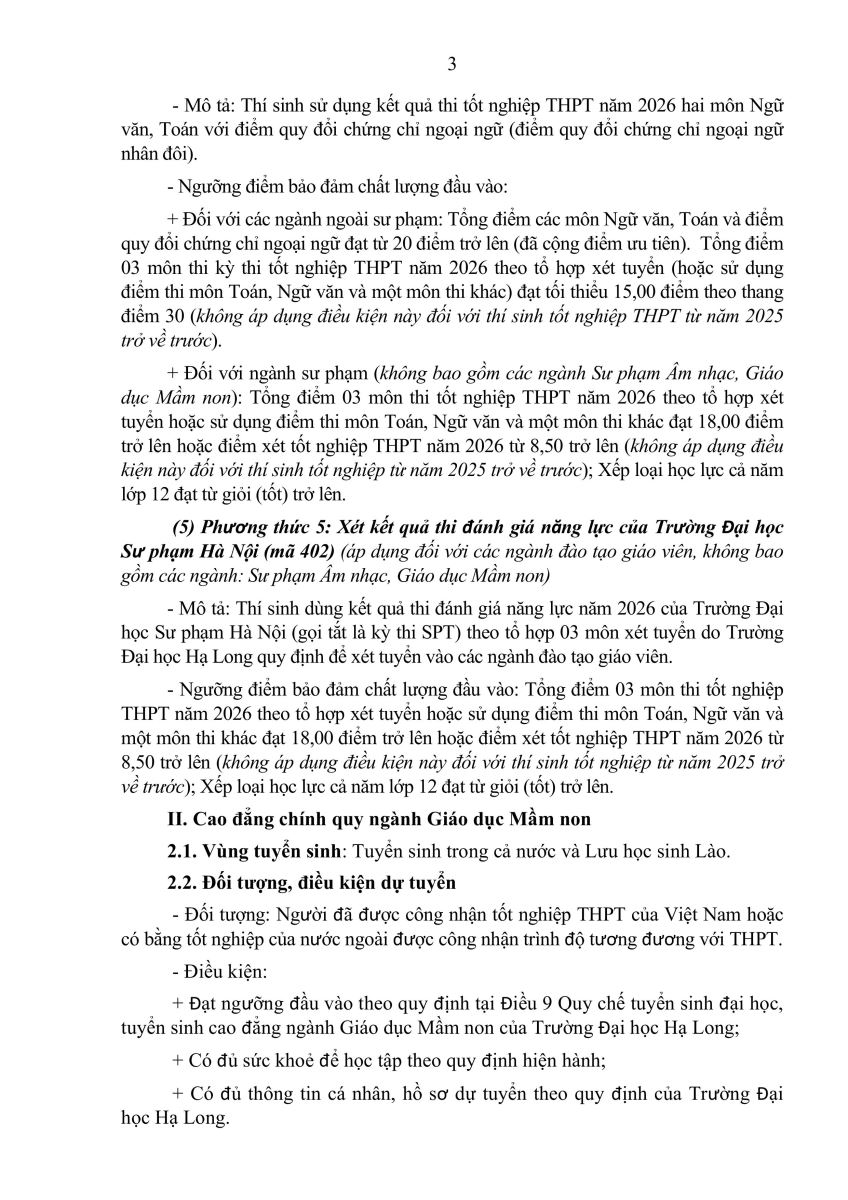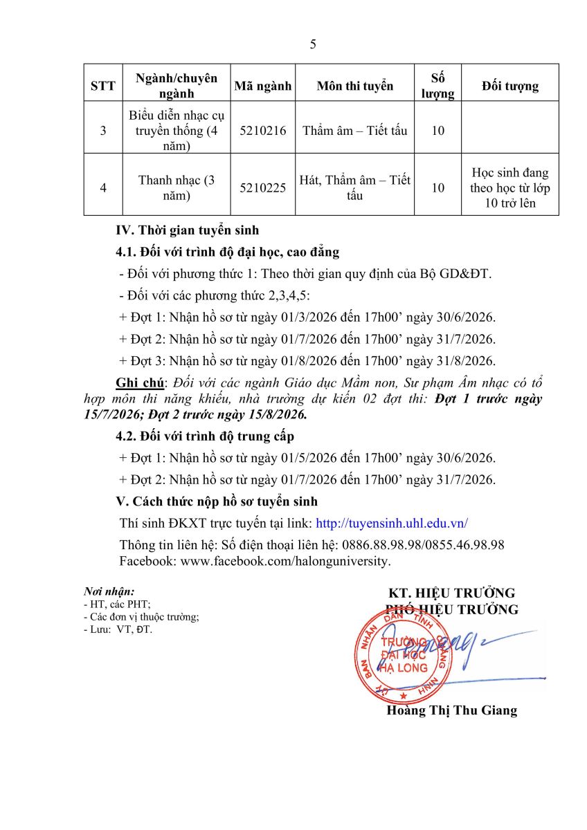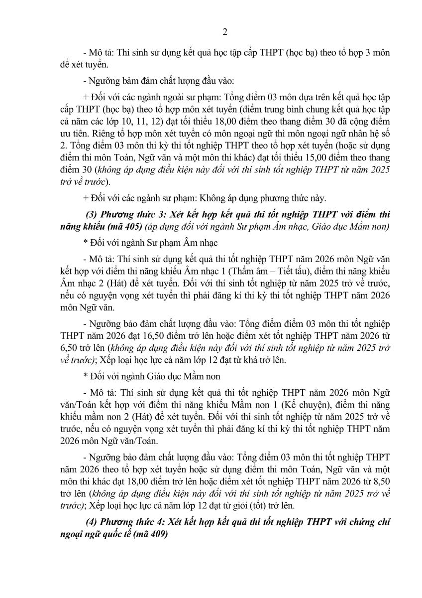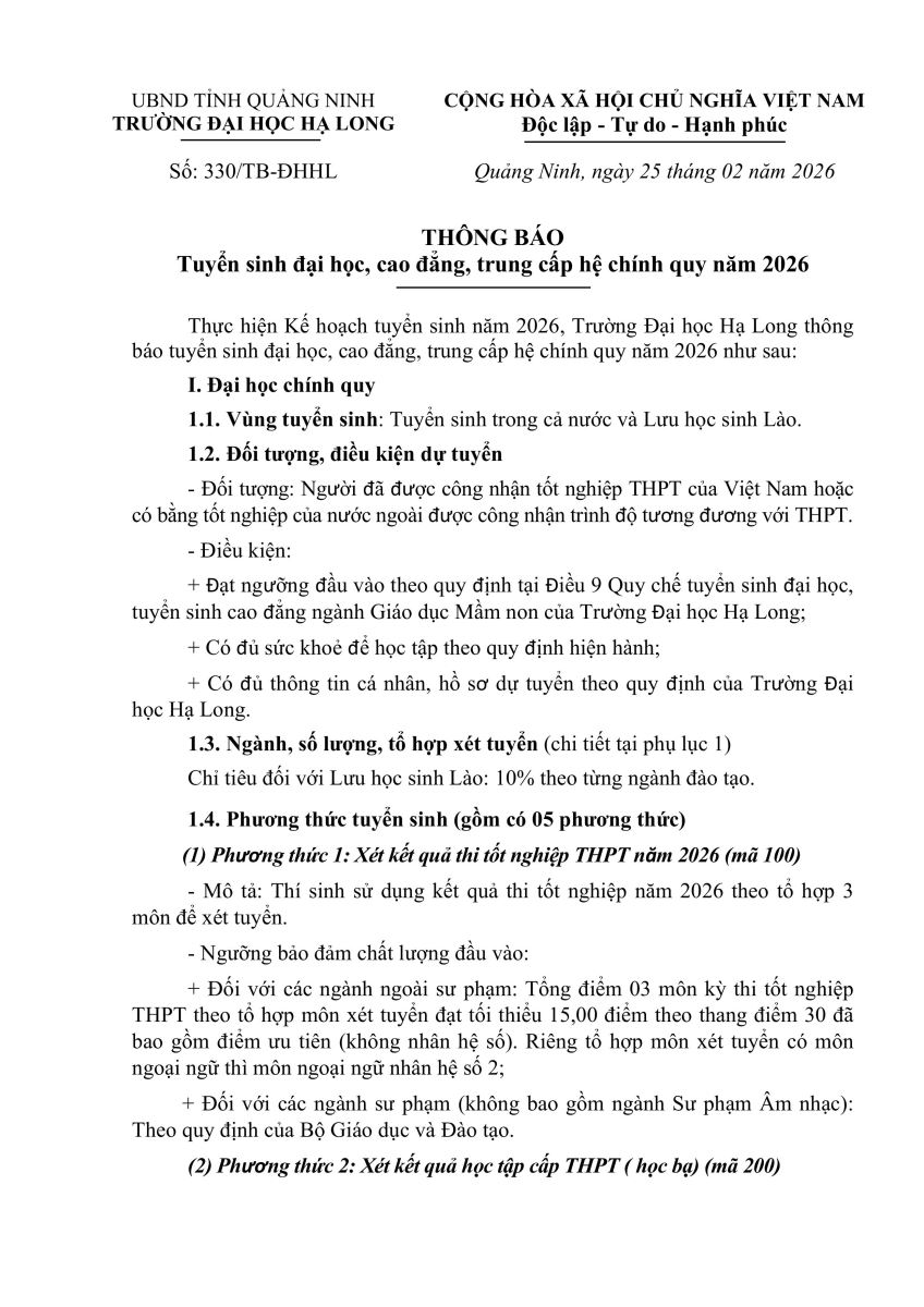 THÔNG BÁO Tuyển sinh đại học, cao đẳng, trung cấp hệ chính quy năm 2026