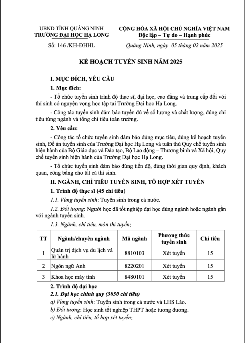 Thông báo 25 ngành tuyển sinh 2025 cập nhật liên tục TẠI ĐÂY !