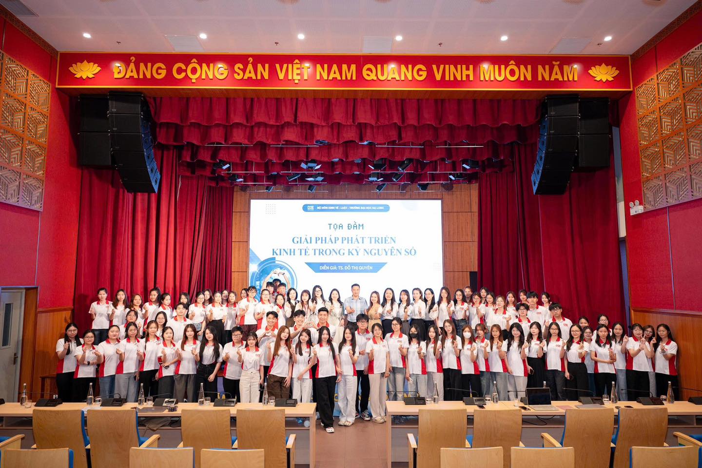 Trong bối cảnh chuyển đổi số đang diễn ra mạnh mẽ trên toàn cầu, việc trang bị kiến thức và tư duy về kinh tế số trở thành yêu cầu cấp thiết đối với sinh viên khối ngành kinh tế, đặc biệt là sinh viên Bộ môn Kinh tế - Luật, Trường Đại học Hạ Long. Nhằm giúp sinh viên hiểu rõ hơn về xu hướng này cũng như định hướng nghề nghiệp trong tương lai, Bộ môn đã tổ chức chương trình tọa đàm với chủ đề: “Giải pháp phát triển kinh tế trong kỷ nguyên số”.