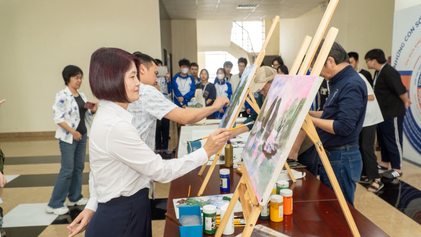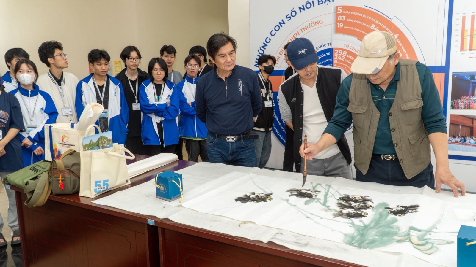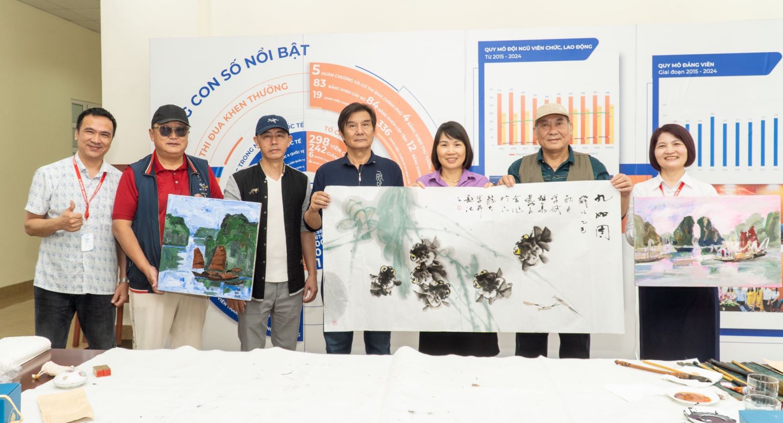 Đại diện đơn vị đã cùng đoàn Viện Mỹ thuật Đông Tây Quảng Tây trao đổi, giao lưu và sáng tác các tác phẩm nghệ thuật lấy cảm hứng từ Vịnh Hạ Long.