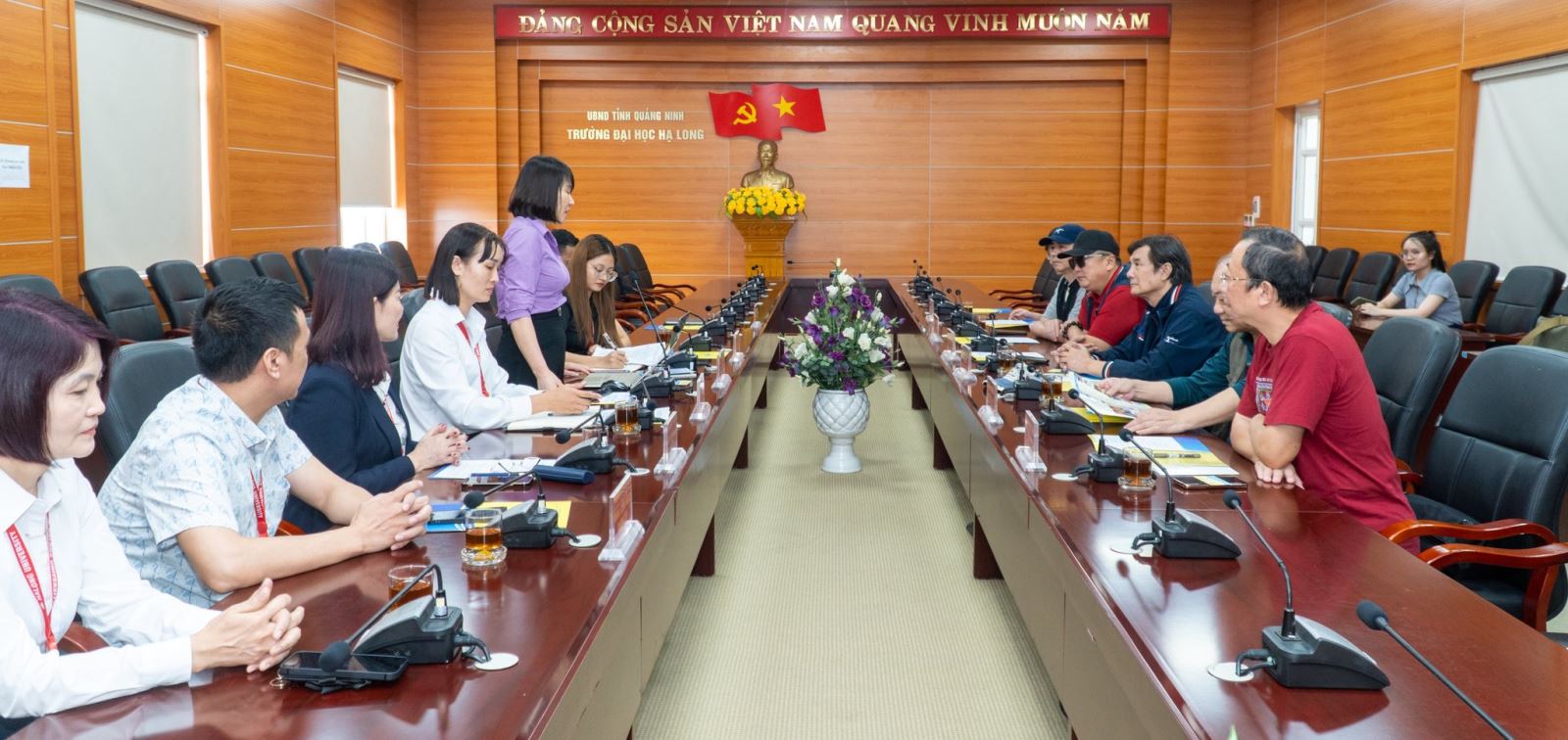 Tham dự buổi tiếp đón về phía Trường Đại học Hạ Long có Ban Giám hiệu; Phòng Hợp tác Khoa học; Khoa Nghệ thuật; Bộ môn Tiếng Trung; Bộ môn Thiết kế đồ họa – Khoa Công nghệ thông tin cùng đại diện các đơn vị liên quan.