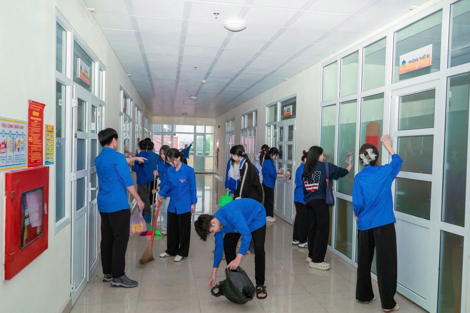 Với tinh thần xung kích – trách nhiệm – tình nguyện, đông đảo đoàn viên, sinh viên đến từ các chi đoàn đã tích cực tham gia, cùng nhau tổng vệ sinh lớp học, giảng đường, hành lang và các khu vực chung; sắp xếp bàn ghế, trang thiết bị học tập gọn gàng, ngăn nắp, góp phần xây dựng môi trường học đường xanh – sạch – đẹp – văn minh.