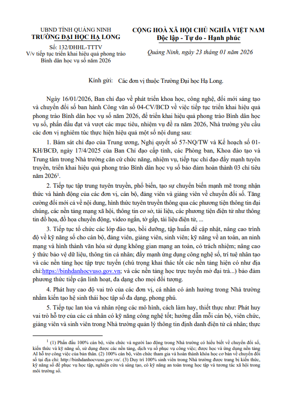 Kế hoạch Chuyển đổi số trong giai đoạn 2021-2025, tầm nhìn đến năm 2030 của Trường Đại học Hạ Long