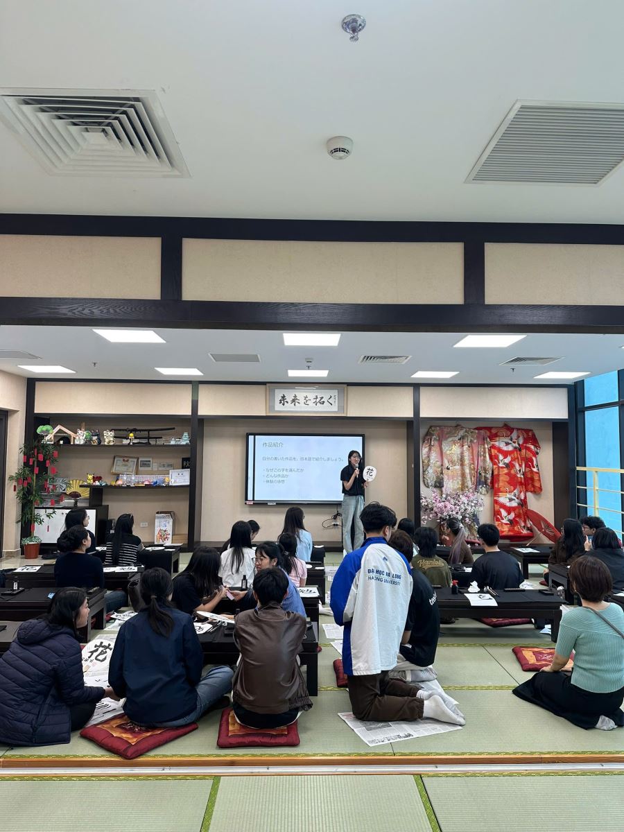 Ngày 09/3/2026, sinh viên ngành Ngôn ngữ Nhật Bản đã có cơ hội tham gia buổi giao lưu văn hóa đặc biệt với bà Morioka Chihiro – giảng viên đến từ Trường Đại học Khoa học Cao cấp Kyoto (Nhật Bản), chuyên gia về thư pháp Nhật Bản.
