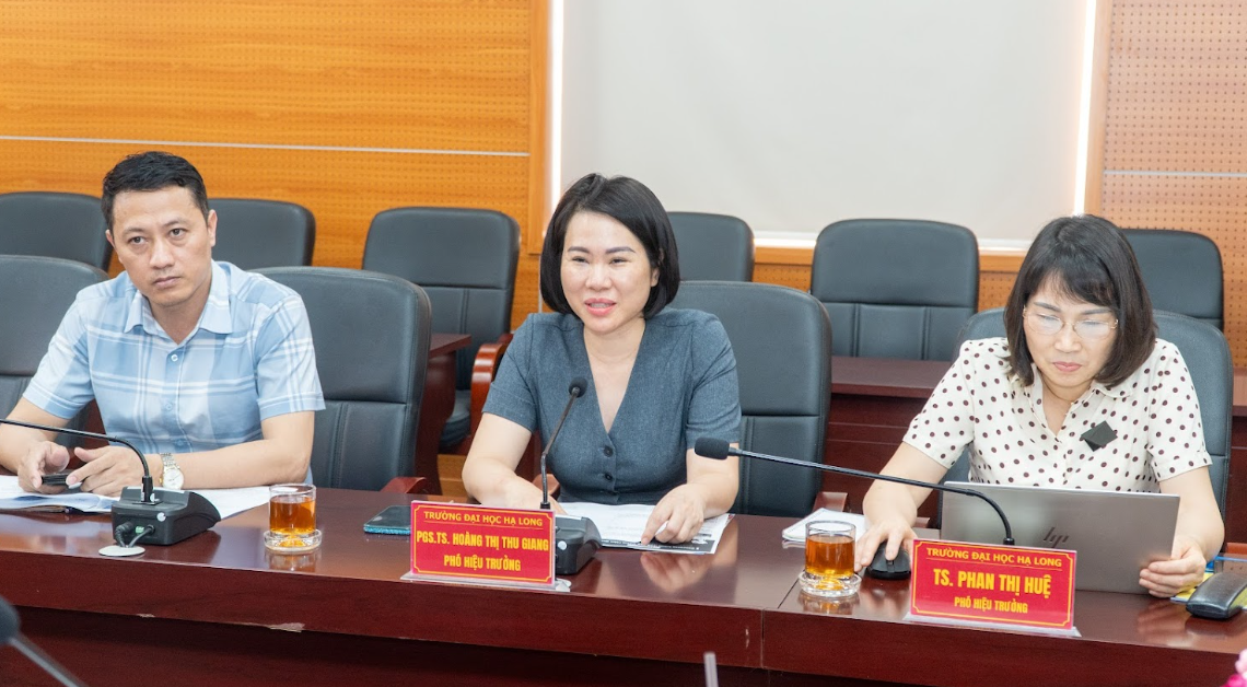 PGS TS. Hoàng Thị Thu Giang - Phó Hiệu trưởng Trường Đại học Hạ Long phát biểu trong buổi làm việc