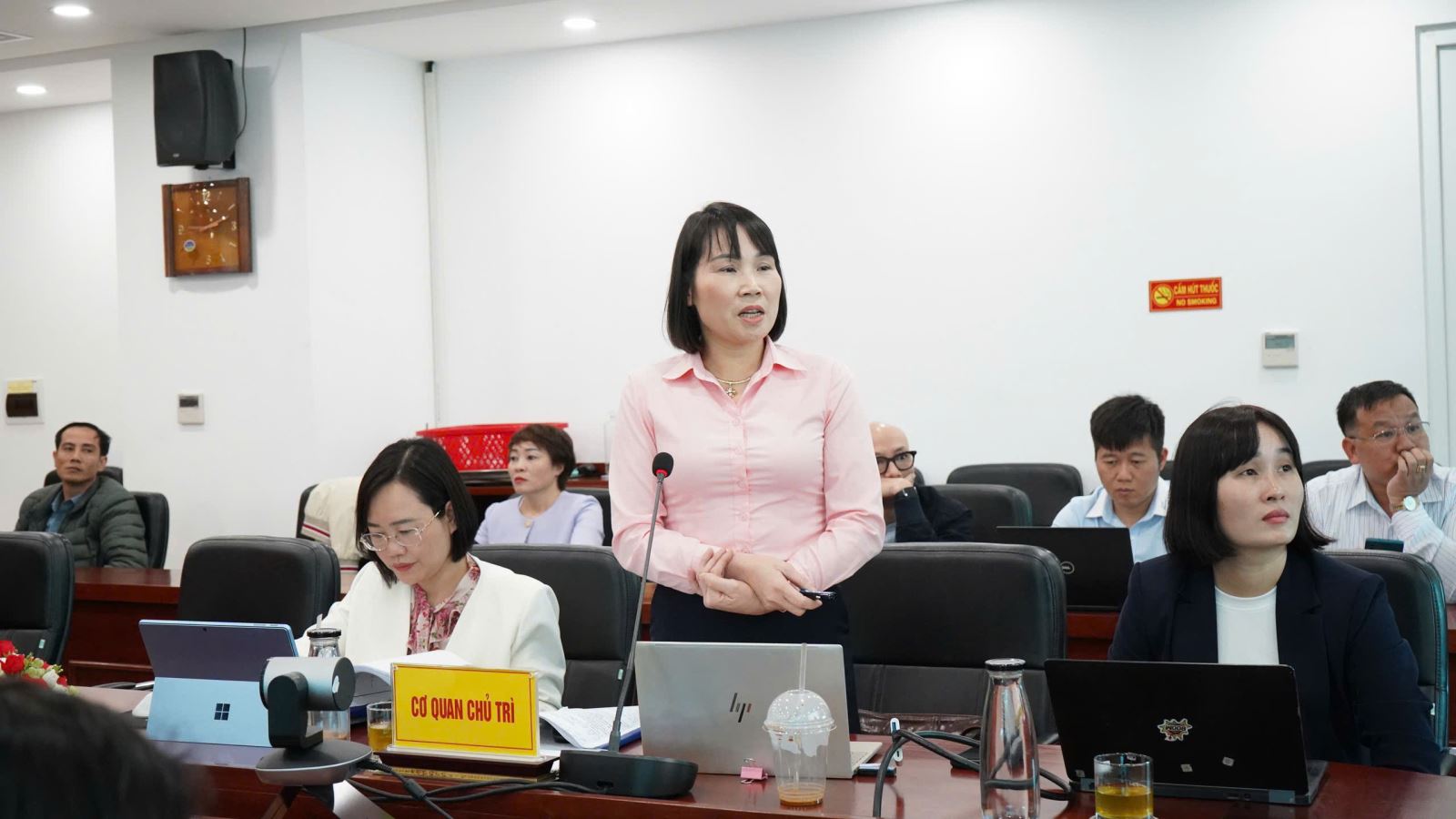 TS. Phan Thị Huệ – Phó Hiệu trưởng, Đại diện đơn vị chủ trì phát biểu tại Hội đồng