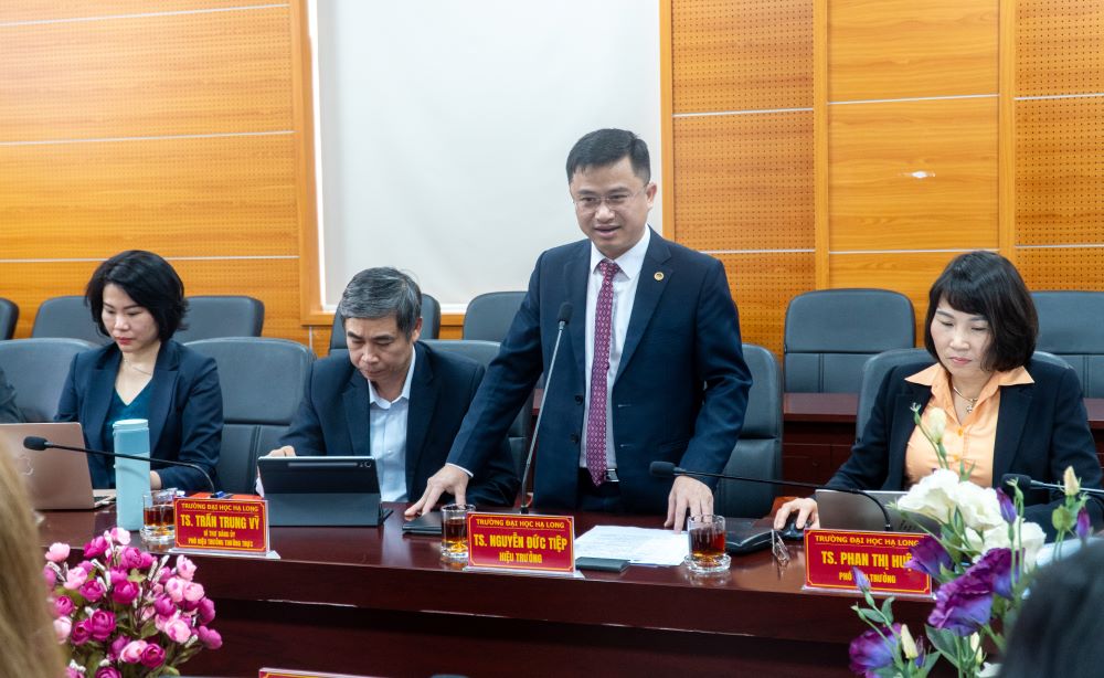Phát biểu chào mừng tại buổi làm việc, TS. Nguyễn Đức Tiệp (Hiệu trưởng Trường Đại học Hạ Long) bày tỏ sự vui mừng khi đón tiếp đoàn TET Education Group đến làm việc, đồng thời khẳng định định hướng phát triển mạnh mẽ hoạt động hợp tác quốc tế, quốc tế hóa giáo dục của Nhà trường trong giai đoạn hiện nay. Qua đó, Trường Đại học Hạ Long mong muốn tăng cường kết nối với các tổ chức giáo dục uy tín, mở rộng cơ hội học tập, nghiên cứu và giao lưu quốc tế cho người học và đội ngũ giảng viên.