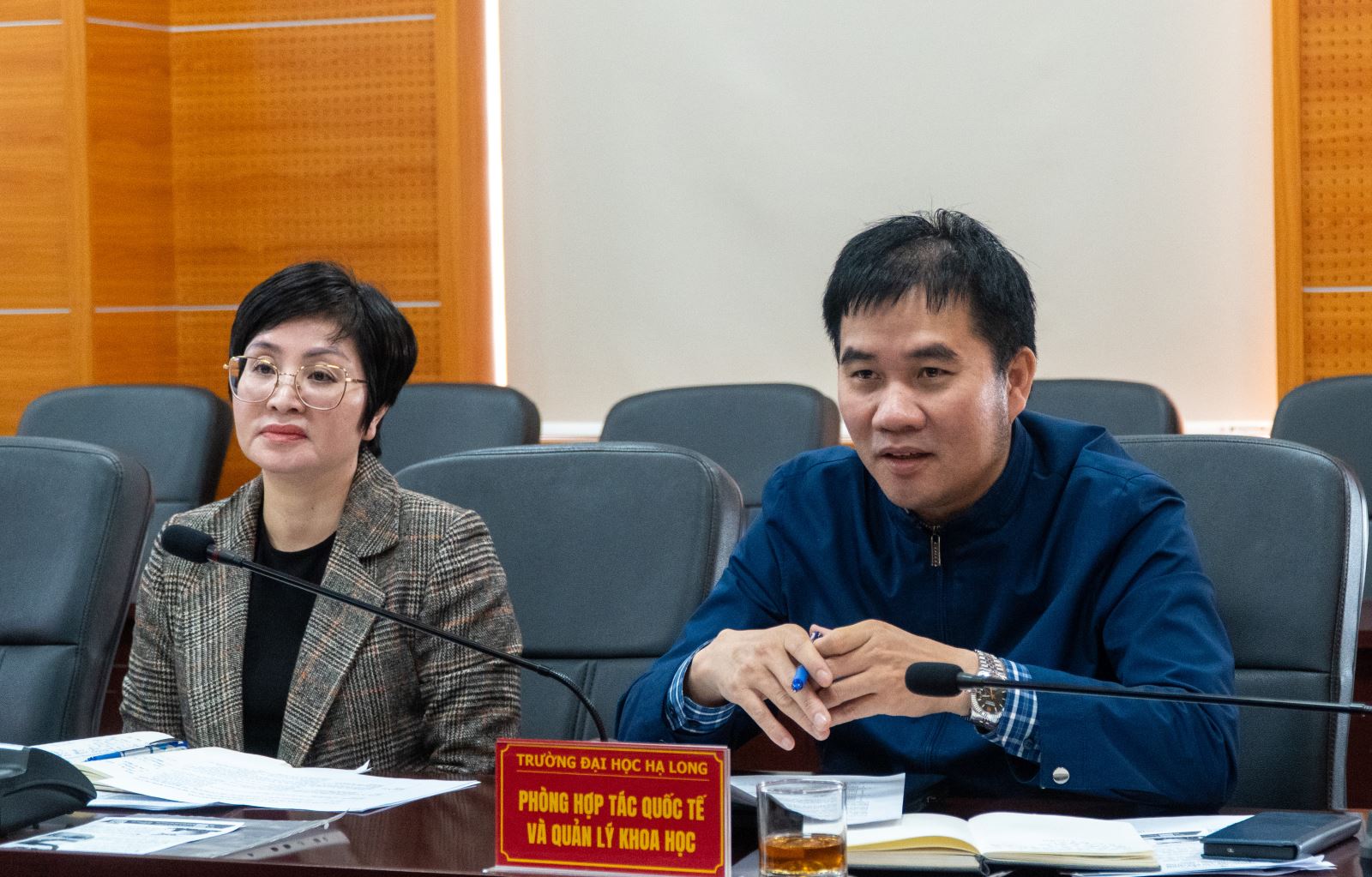 PGS.TS Phạm Quý Giang - Trưởng phòng Hợp tác quốc tế và Quản lý khoa học Trường Đại học Hạ Long phát biểu tại cuộc họp