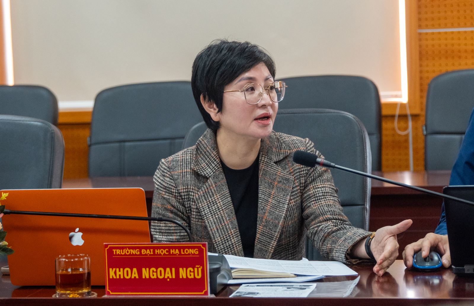 TS. Nguyễn Thị Hằng - Trưởng khoa Ngoại ngữ Trường Đại học Hạ Long phát biểu tại cuộc họp