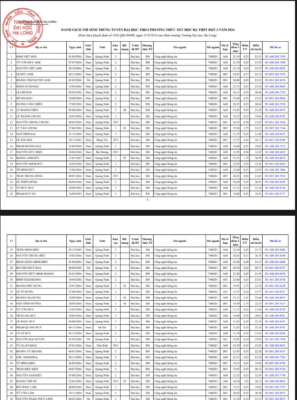 Ngày 28/7/2024, tại Cung Quy hoạch, Hội chợ và Triển lãm tỉnh Quảng Ninh, Trường Đại học Hạ Long đã long trọng tổ chức Lễ tổng kết các khóa đào tạo và Trao Bằng tốt nghiệp năm 2024 cho gần 850 sinh viên