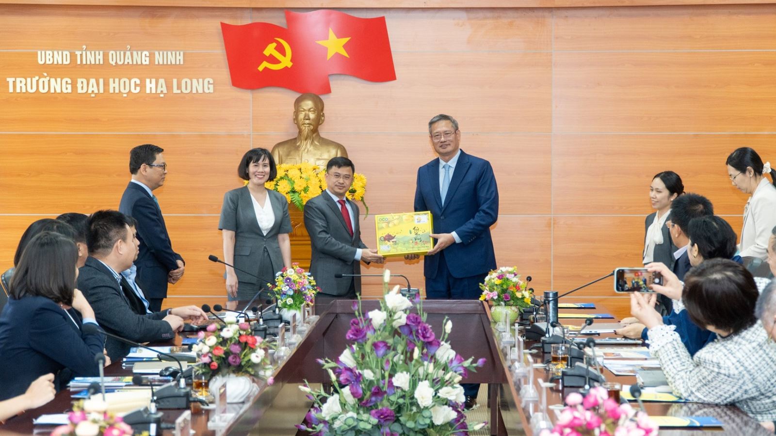 Ngày 26/11/2025, trường Đại học Hạ Long đã tổ chức đón tiếp trang trọng đoàn đại biểu dự Diễn đàn nhân dân Việt – Trung đến thăm và làm việc tại Trường. Buổi làm việc diễn ra từ 9h30 đến 11h00 tại Phòng Hội thảo, tầng 7, Nhà hiệu bộ trường Đại học Hạ Long. Đây là hoạt động nằm trong chuỗi chương trình tăng cường giao lưu hợp tác hữu nghị giữa nhân dân hai nước Việt Nam Trung Quốc.