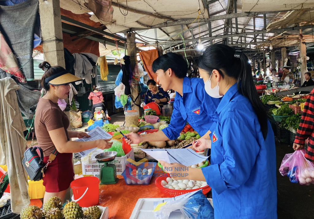 Huyện Đoàn Tiên Yên phối hợp với các ngân hàng tuyên truyền đến hộ kinh doanh thực hiện thanh toán không dùng tiền mặt.